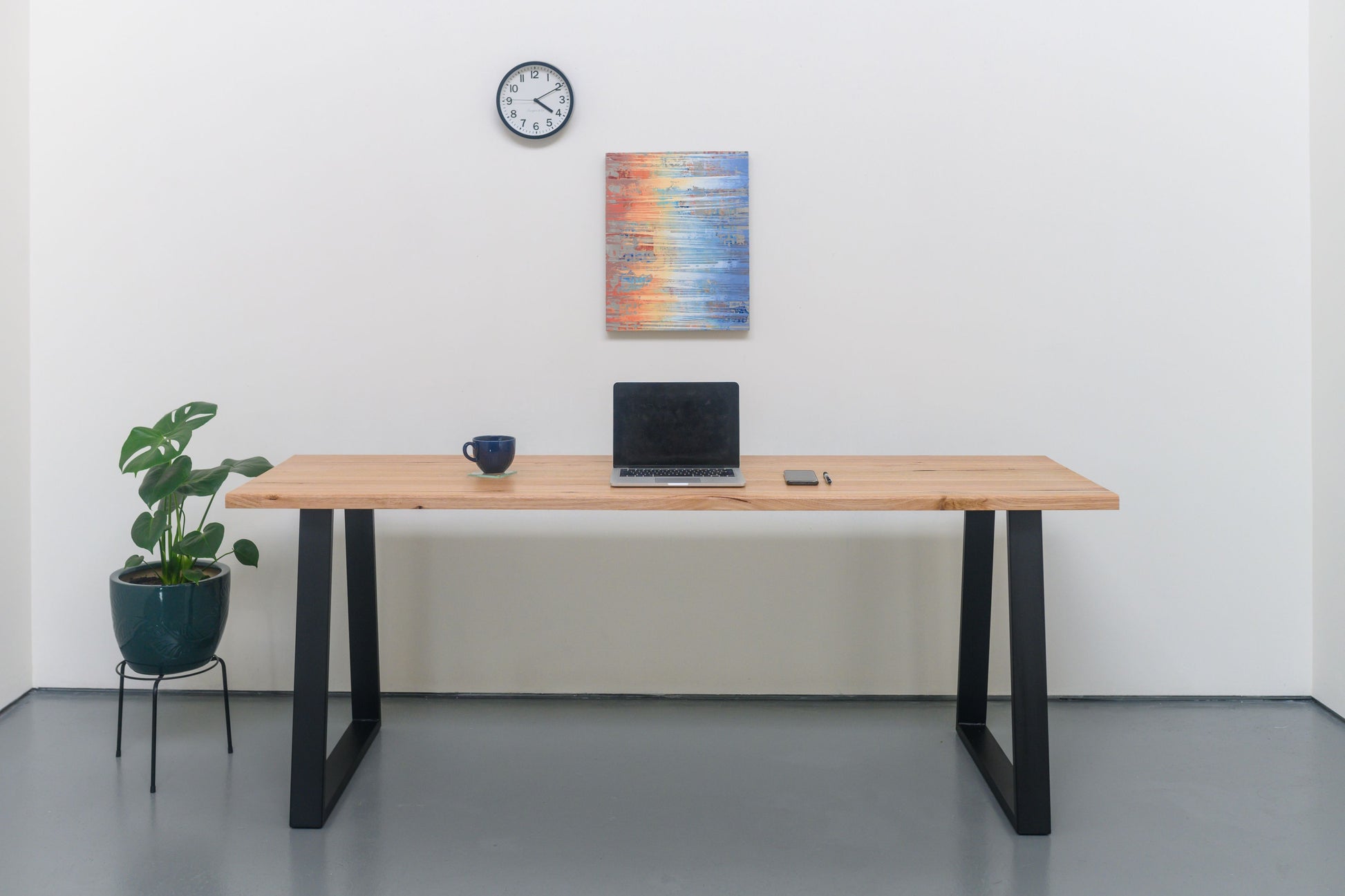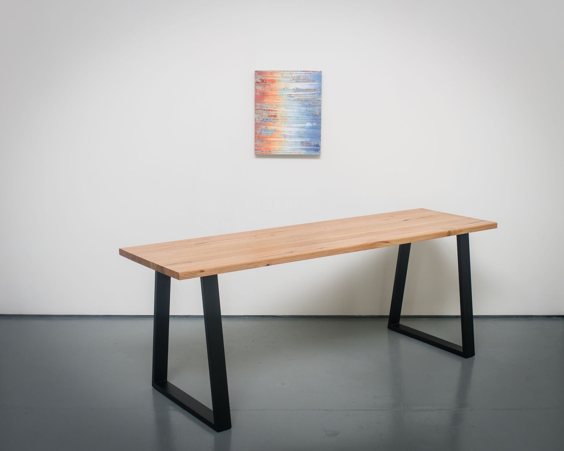 Our locally sourced feature grade Vic Ash displays some beautiful knots and gum lines giving the top real character. The ultimate two person working desk at 2.4m long.