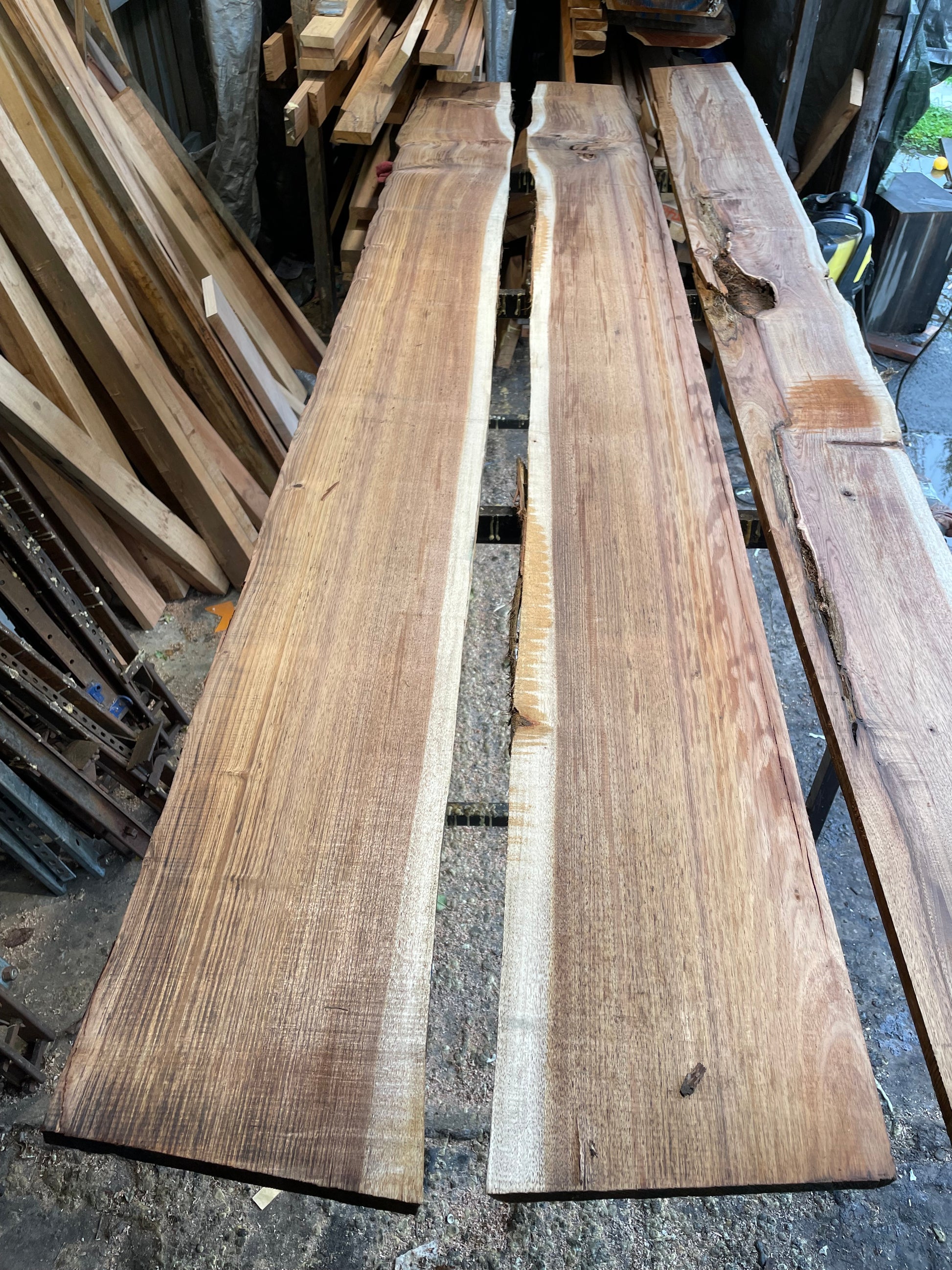 New batch of Blackwood slabs. Regrowth timber. Lighter brown than the old growth. Really nice batch at 8% moisture content and 24mm thick on average. These all have a single live edge.