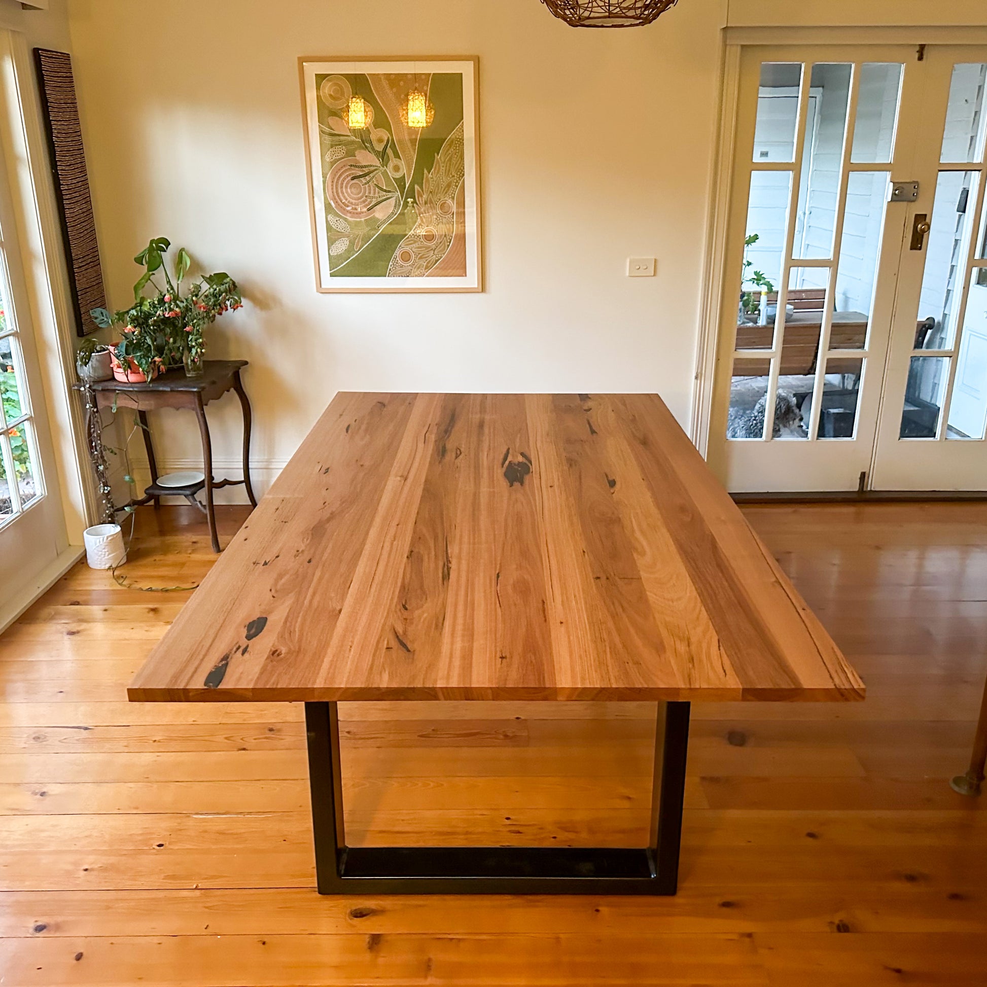 Steel Loop Legs Dining Table in Recycled Hardwood