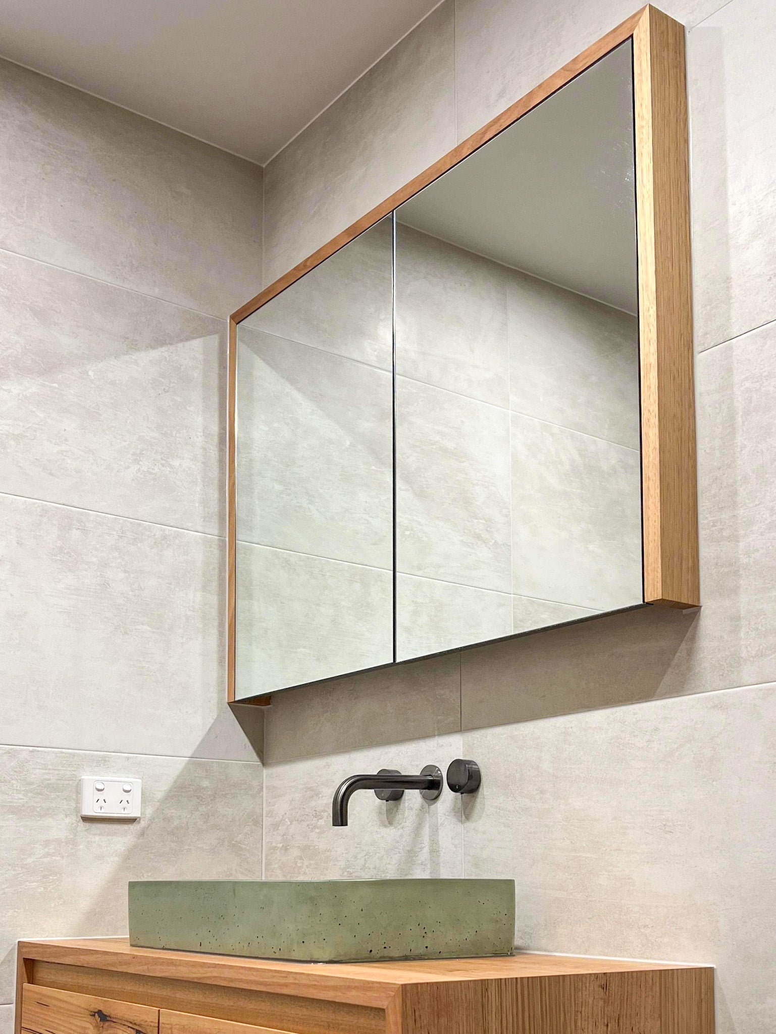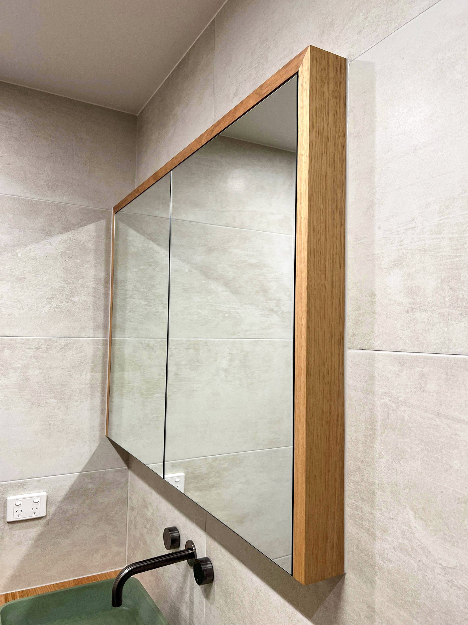 Timber-clad shaving mirrors in Recycled messmate, Vic Ash or Blackwood.